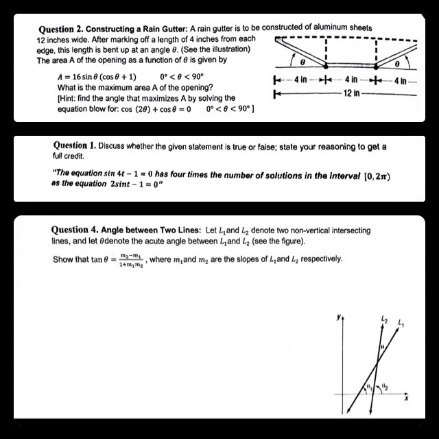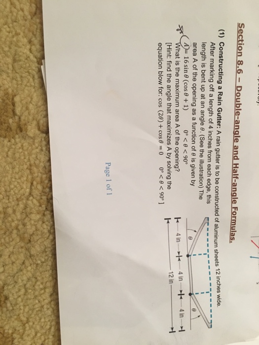 See the illustration the area a of the opening as a function of theta is given by a 16 sin theta cos theta 1 0 degree theta 90 degree what is the.